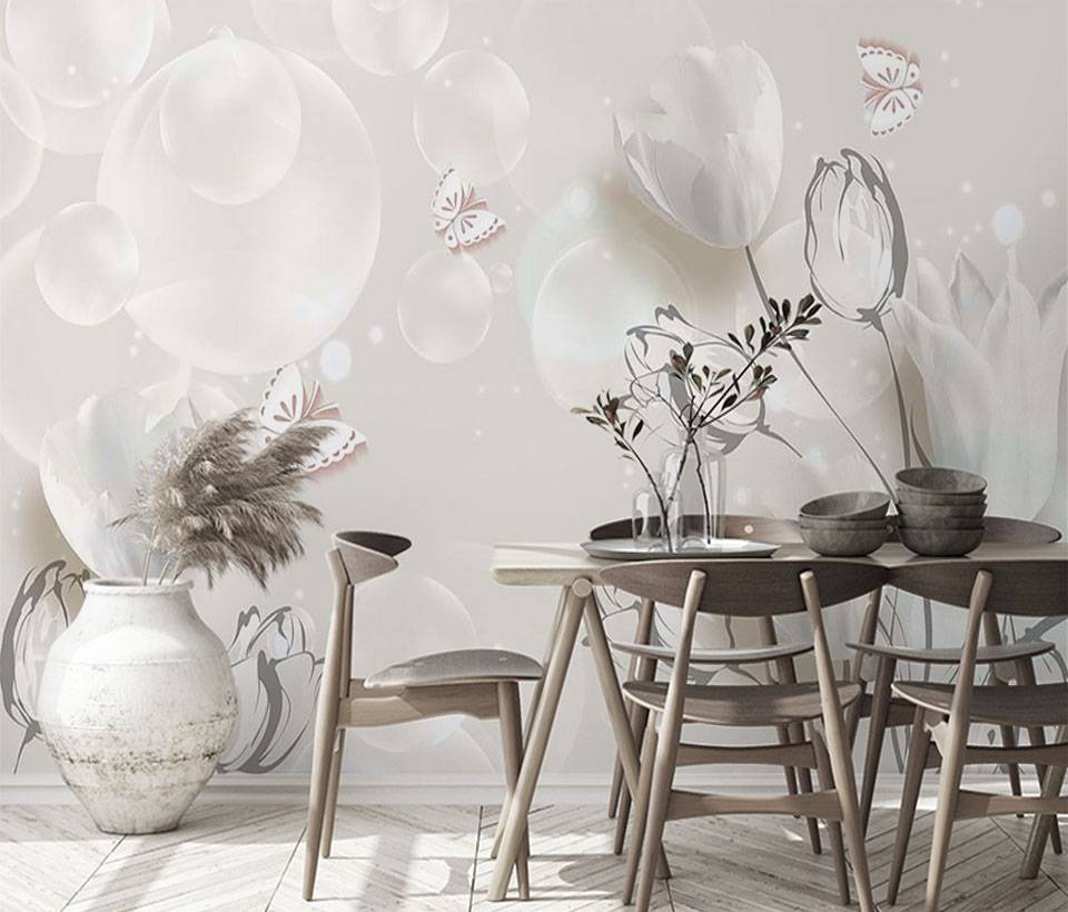 Наличие ярких оттенков в дизайне фотообоев допускается, но они не должны доминировать. Самым удачным вариантом считается их комбинация с приглушенными цветами. Алые маки с зеленой листвой, к примеру, могут быть нарисованы на светлом фоне.