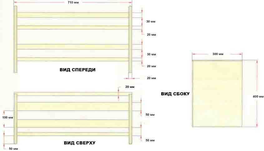 Чертеж полки для обуви с размерами