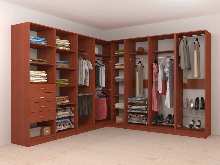Угловой вариант корпус-наполнительной системы – это отличный вариант для того, чтобы можно было разместить вещи всех членов семьи.