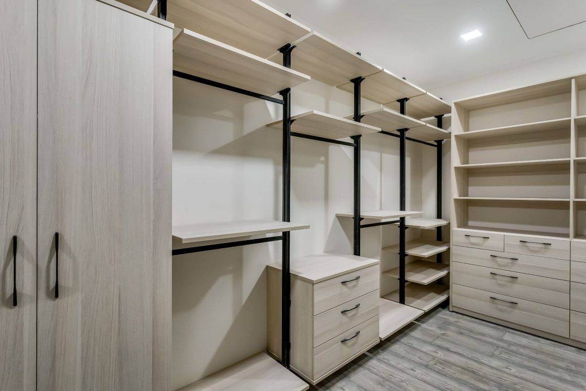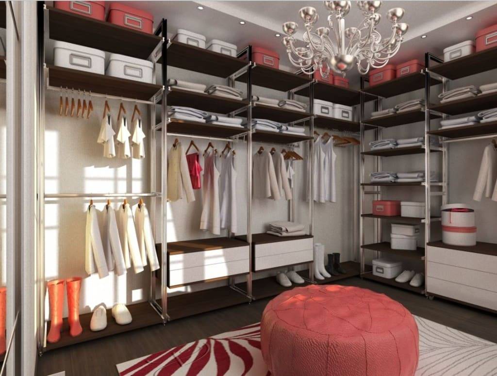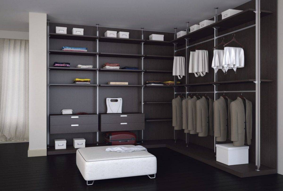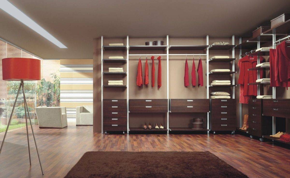Если вы решили выделить под гардероб отдельную комнату, то каркас-комплекс станет удобным вариантом для ее оформления.