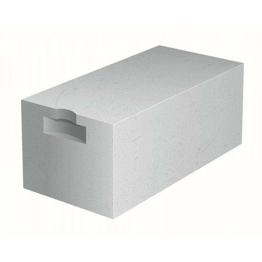 Абсолютно гладкий прямоугольный газосиликатный блок, имеющий выемки для захвата руками. Захват удобен в работе, поскольку позволяет легко перемещать блоки. Наличие ручек захвата увеличивает расход клея, поскольку технология кладки газосиликатных блоков предусматривает заполнение всех пустот в процессе работы.