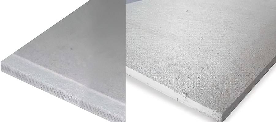 Выпускают гипсокартон для разных условий эксплуатации, для легкого распознавания применяют картон разного цвета (серого, зеленого, розового):