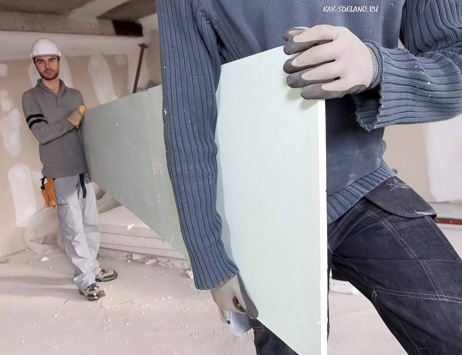 Малая масса и простой монтаж. В принципе, с задачей «перенести лист гипсокартона, распилить его и установить на стену либо потолок» справится даже один человек;
