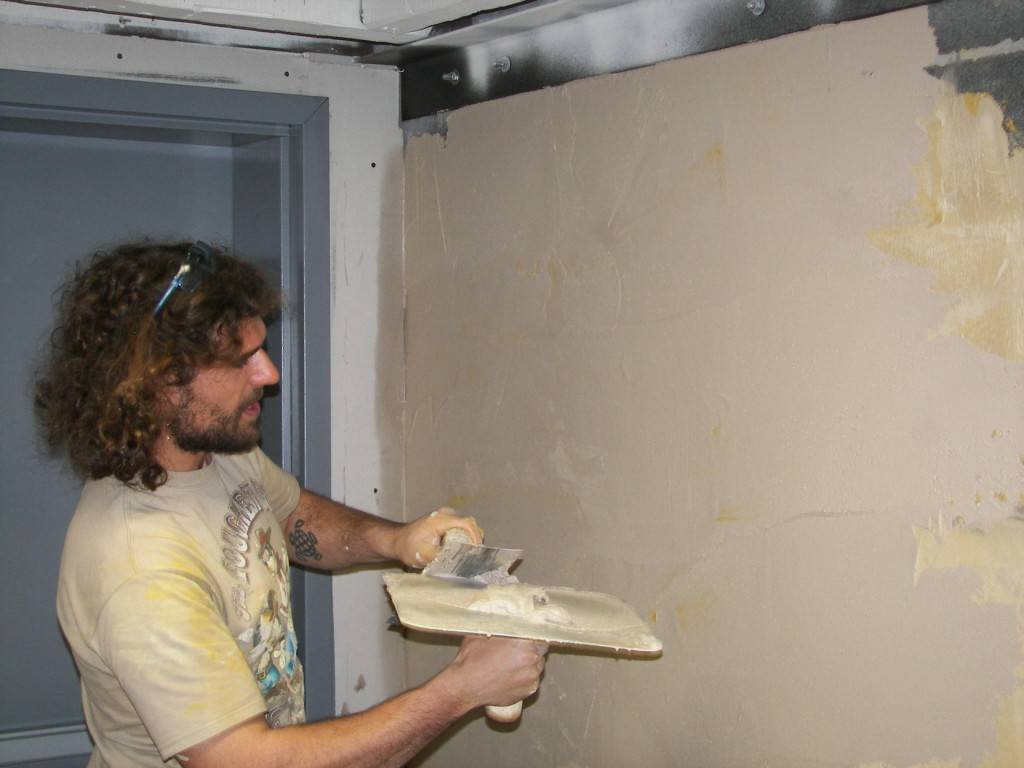 - На бетонную или кирпичную стену гипсовую плитку можно посадить при помощи стартовой шпаклёвки.