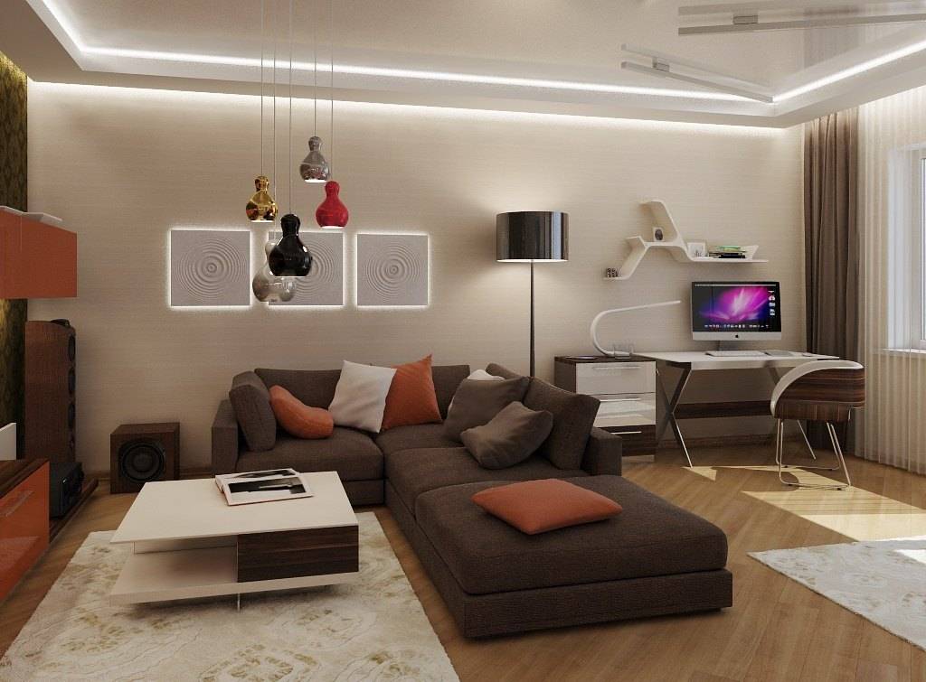 Зонируем за счет теплого многоуровневого освещения (лампы, торшеры, люстры, бра)