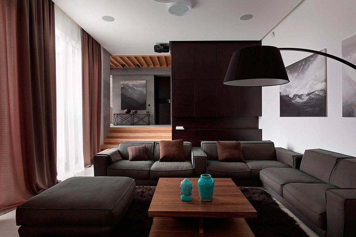 Если вы используете цветовые градиенты в дизайне, то также можете сделать атмосферу более динамичной, используя различные материалы. Древесина стола, которая очаровывает темно-коричневым и более светлым карамельным оттенком, соответствует ткани дивана и песочному цвету стульев. Темно-коричневый цвет в гостиной может также иметь различный эффект через неоднозначные текстуры. Окрашенная, лакированная, глянцевая или матовая, коричневая поверхность обеспечивает разнообразие. Убедитесь сами, ознакомившись с представленной фото-галереей.