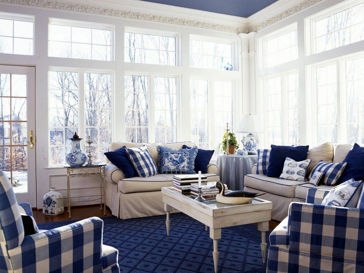 - стиль кантри пришел к нам из деревни. Чтобы окрасить «country style» в нужную гамму достаточно заказать деревянную мебель серого и синего цвета. Что же касается занавесок, скатертей, пледов, диванных подушек, то их можно подобрать в любом дизайнерском магазине;