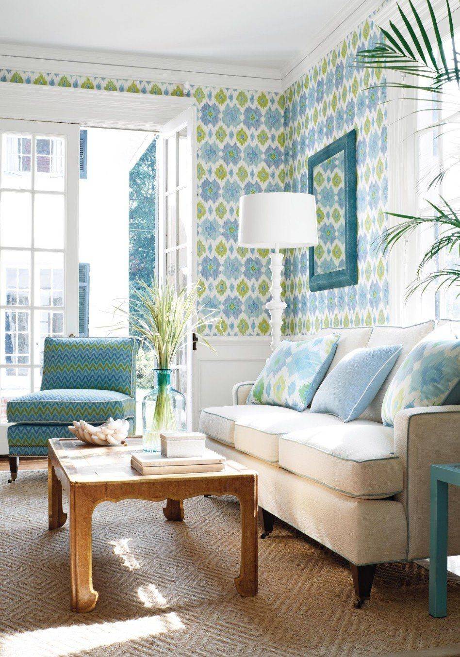 В сочетании со светло-серыми полосками в просторной жаркой комнате обои создадут эффект прохлады, а обои с золотыми узорами и белыми рельефными плинтусами подойдут для комнаты в классическом стиле.