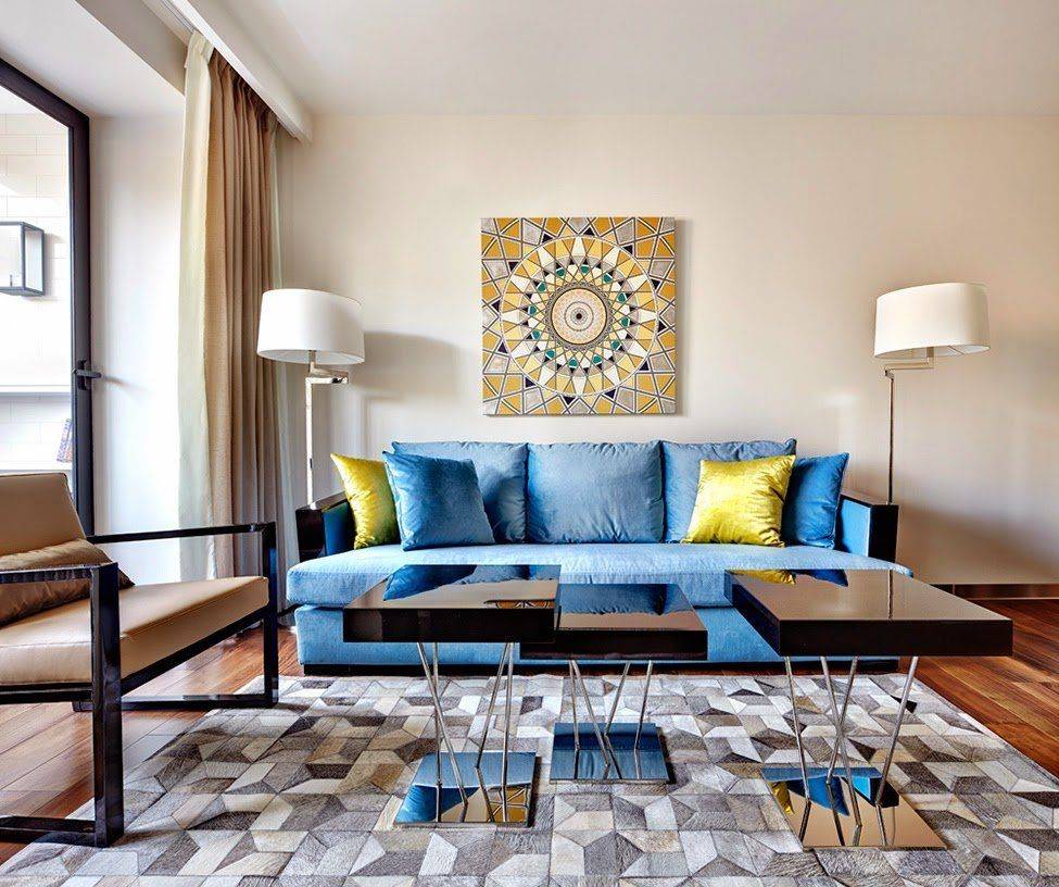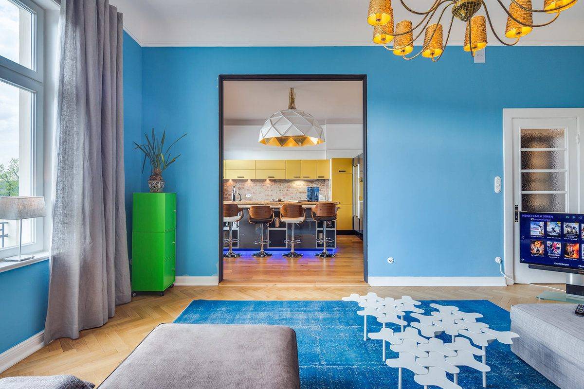Гостиная в голубом цвете: удачные сочетания с другими расцветками