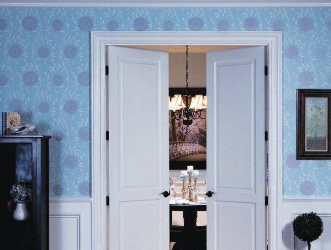 Голубой цвет обоев сочетается с большим количеством других цветов в интерьере помещений: