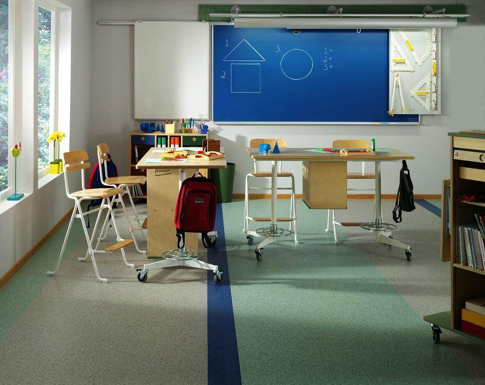 Гомогенный линолеум отличается повышенной износостойкостью, поэтому его часто кладут в школах и офисах