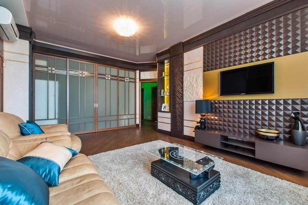 Не рекомендуется разделять гостиную больше чем на четыре разных функциональных зоны, а лучше на две или три, иначе возможен эффект захламленности и переполненности, что не прибавит жильцам эстетического наслаждения.