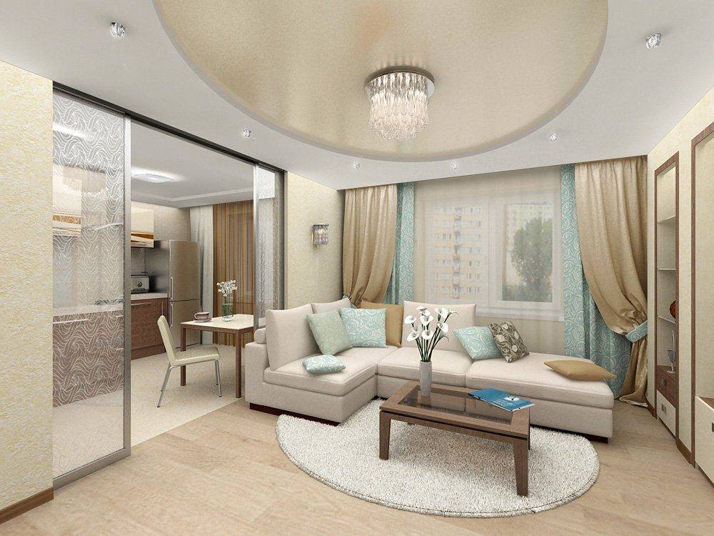 Не менее часто соединяют гостиную и кухню, что актуально в квартирах-студиях и однокомнатных квартирах. Чаще всего разделителем зон выступает барная стойка, которую со стороны зала можно оформить в цвет его стен.