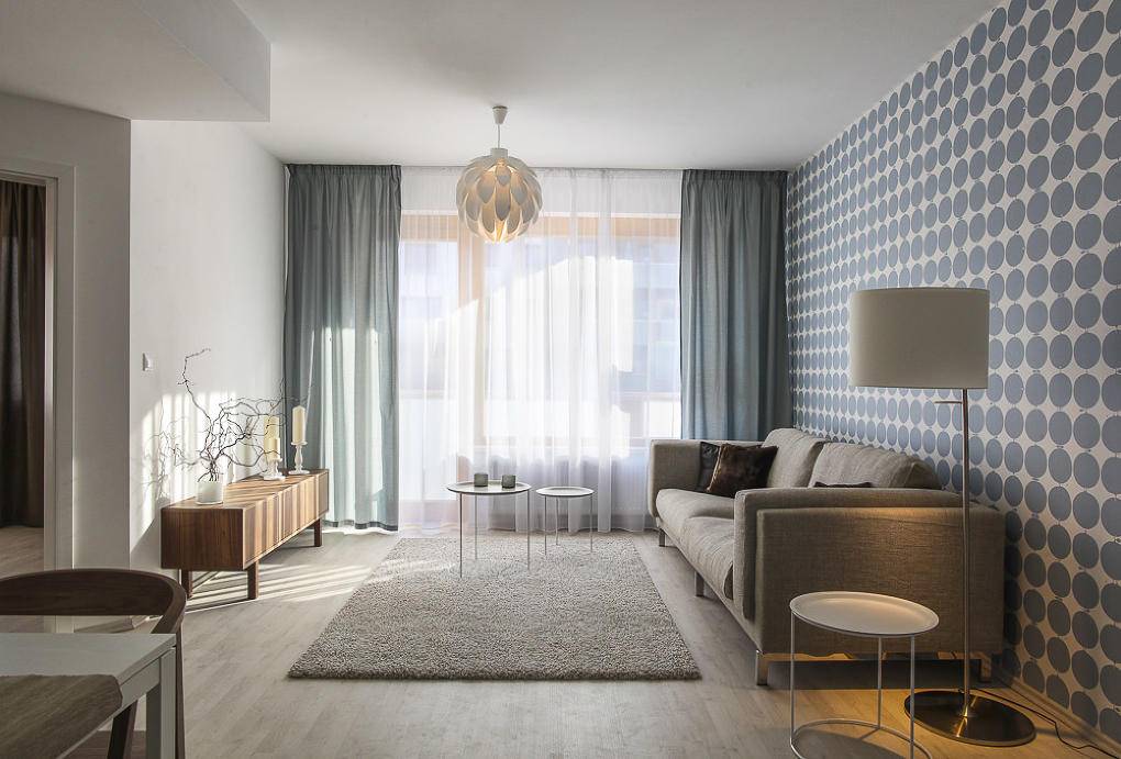 Светлый однотонный фон всегда хорошо выглядит и позволяет выбрать мебель и аксессуары самых разнообразных цветов и оттенков. При этом не стоит останавливаться только на одном тоне. Чтобы стены не выглядели скучно и безлико, лучше использовать несколько тонов или подобрать фактурные покрытия, возможно обои с узором.