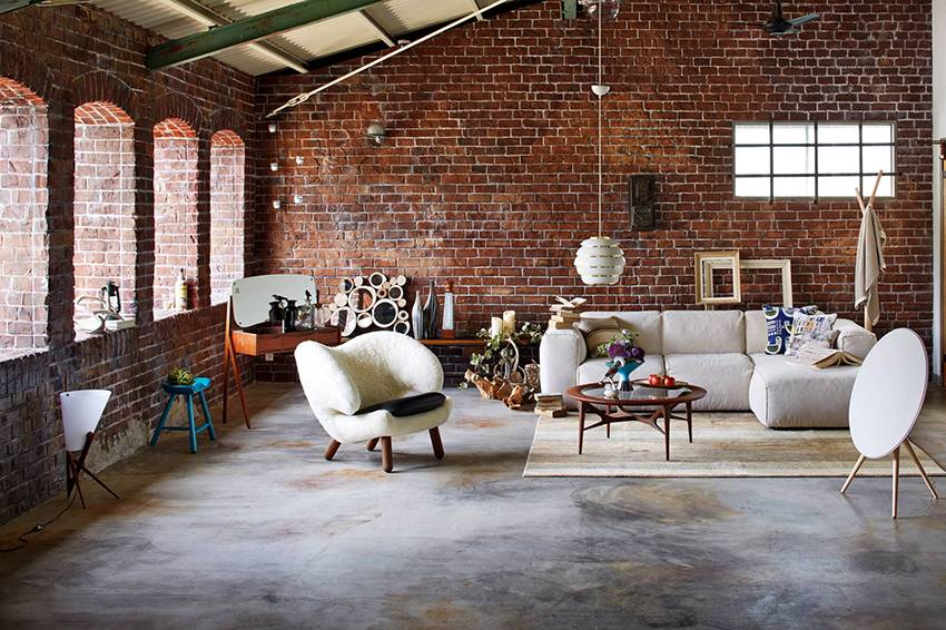 В помещениях в стиле лофт отлично сочетаются новые и старые элементы интерьера