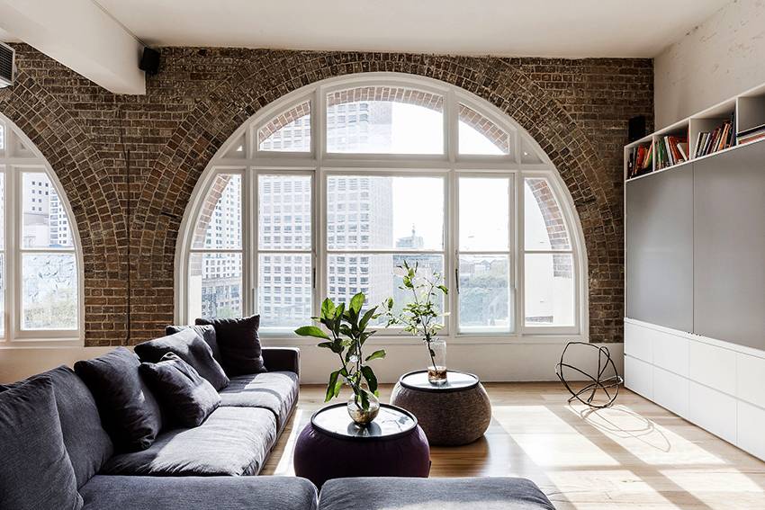 Одной из главных черт стиля лофт являются большие окна, не прикрытые шторами