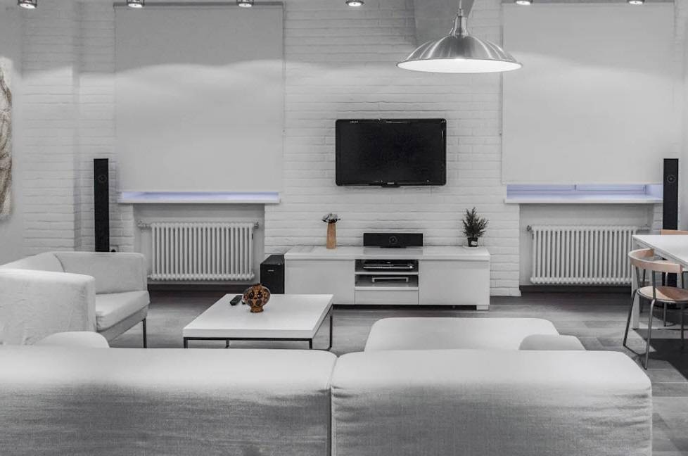 Белая гостиная в стиле лофт