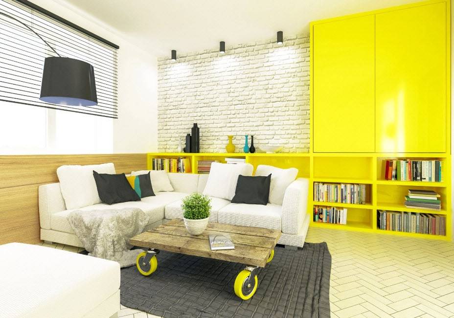 Желтая гостиная в стиле лофт