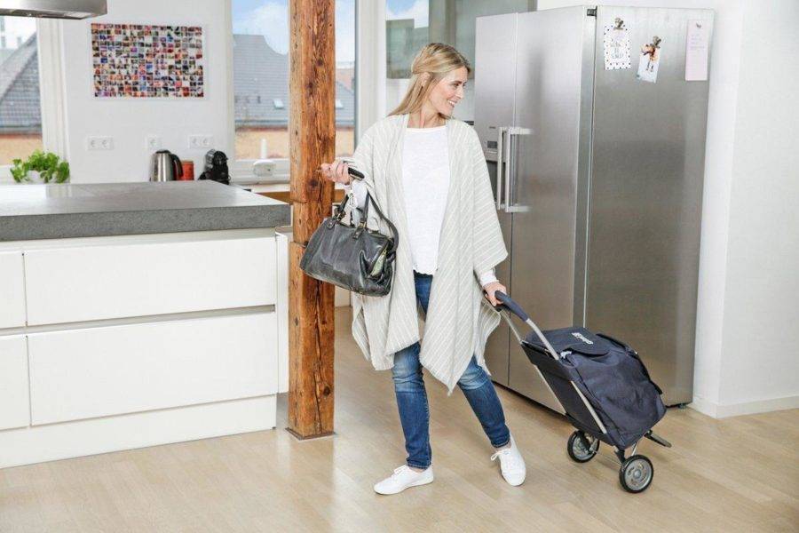 Если же вы заходите за провизией после работы, то таскать на работу тележку с сумкой захотят немногие. В таком случае больше подойдет сумка на колесах без тележки. В свернутом состоянии она занимает немного места — как средних размеров косметичка.