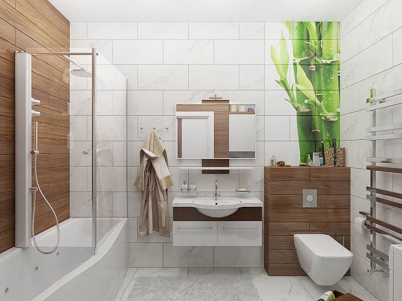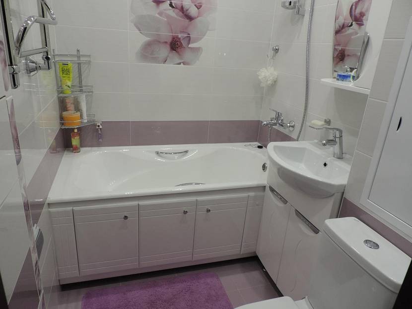 - Установка традиционной прямоугольной ванны вдоль одной стены, и душевой кабины в углу, возле противоположной стены.