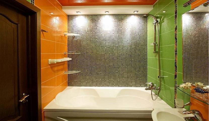 - не бойтесь экспериментировать с различными цветовыми комбинациями плитки — отдельные участки стены можно выложить плиткой контрастного цвета.