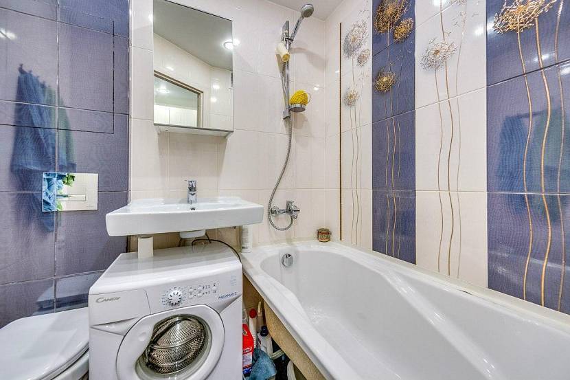- Если душевая кабина категорически не подходит, стоит выбрать компактную угловую ванную – выглядит современно, позволяет экономить пространство.