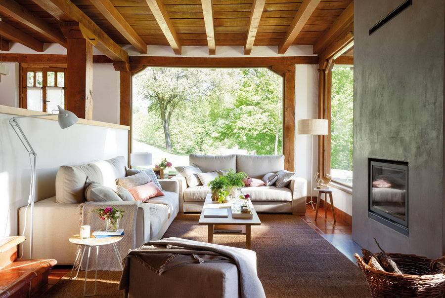 Испания – страна маленькая, в ней много старой городской застройки. Из-за тесноты дома в городах возводились узкие. Они стояли вплотную друг к другу. Если нужно было увеличить площадь здания, надстраивались верхние этажи. Чтобы небольшие комнаты казались просторными, обязательно делались высокие сводчатые потолки. Для возведения верхних этажей формировались мощные перекрытия из крупных балок. Они не скрывались и становились частью украшения интерьера.