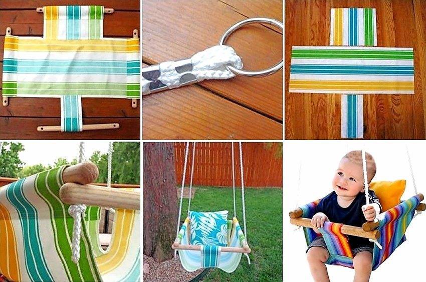 Безопасные детские качели из текстиля и дерева можно создать своими руками