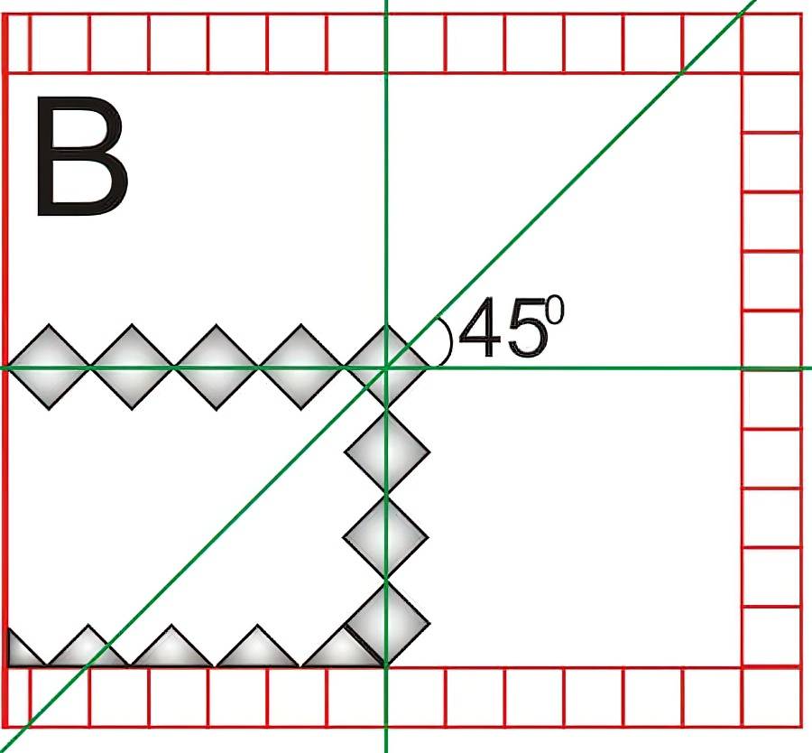 Очень важно, чтобы была соблюдена строжайшая перпендикулярность. Чтобы не допустить ошибки, а это вполне возможно при пользовании угольником и линейкой, обязательно следует проверить прямой угол с помощью формулы известного «египетского треугольника»: 3² + 4² = 5²