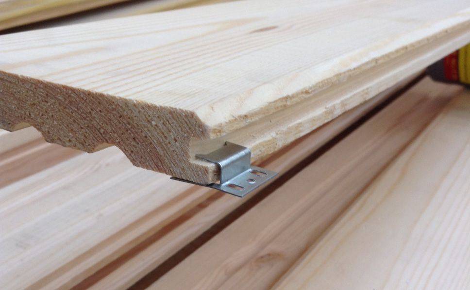 Для внутренних работ можно использовать так называемые кляймеры для крепления имитации бруса. Они представляют собой штампованные стальные изделия, которые монтируются на обрешетку. Отделочная доска при этом просто «навешивается» на кляймеры. Производители позиционируют такие крепежные изделия как простые и надежные, однако на деле получается, что их использование обходится дорого и не всегда неэффективно – об этом свидетельствуют отзывы на имитацию бруса и рекомендации людей, которые самостоятельно занимались вопросом ее монтажа.