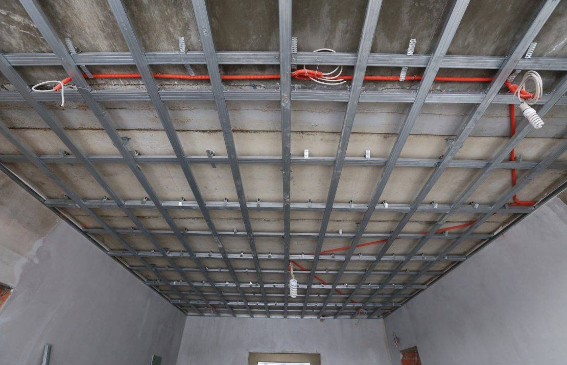 - под каркасом может прятать изоляция потолка, электропроводка, коммуникации;