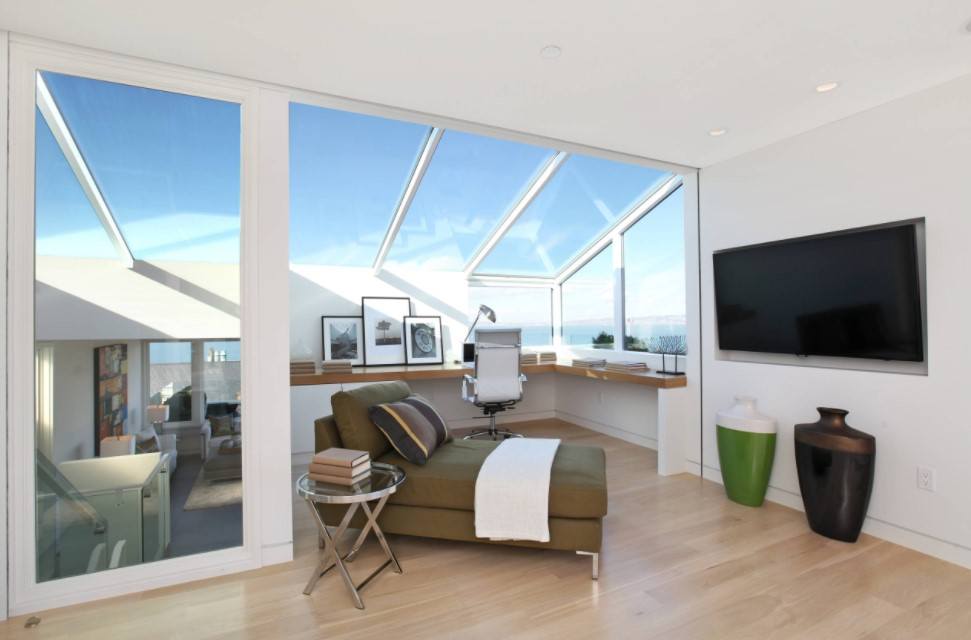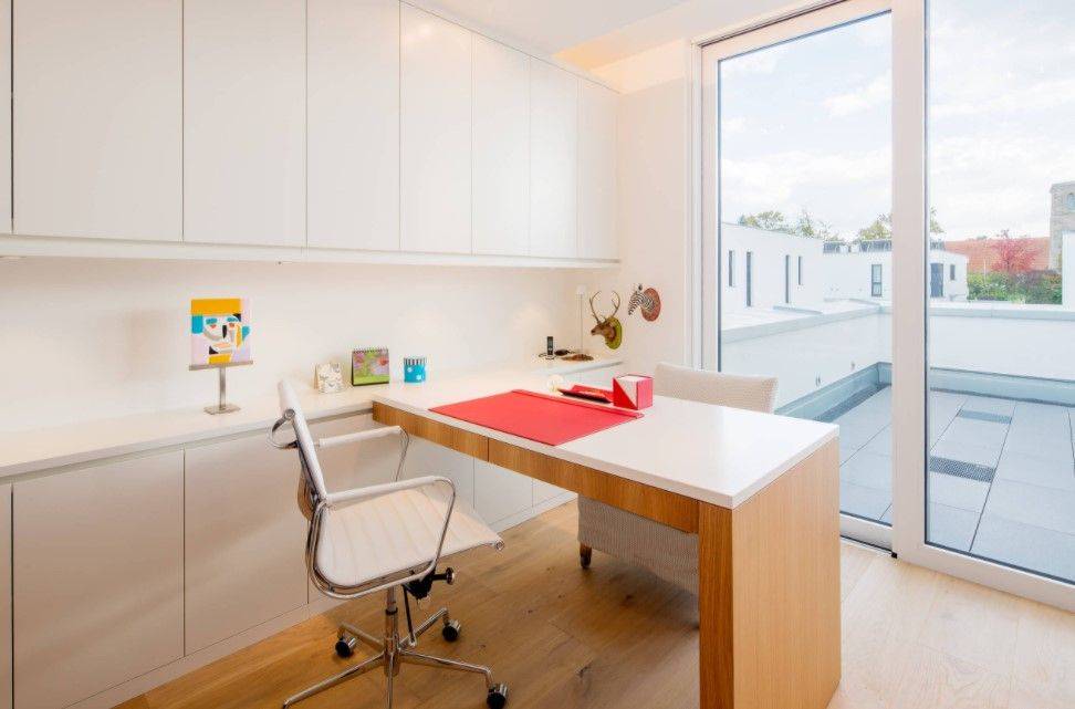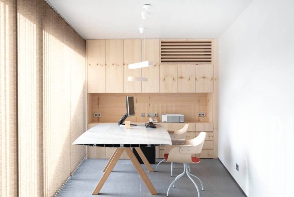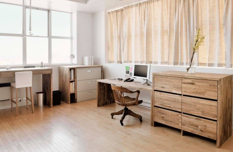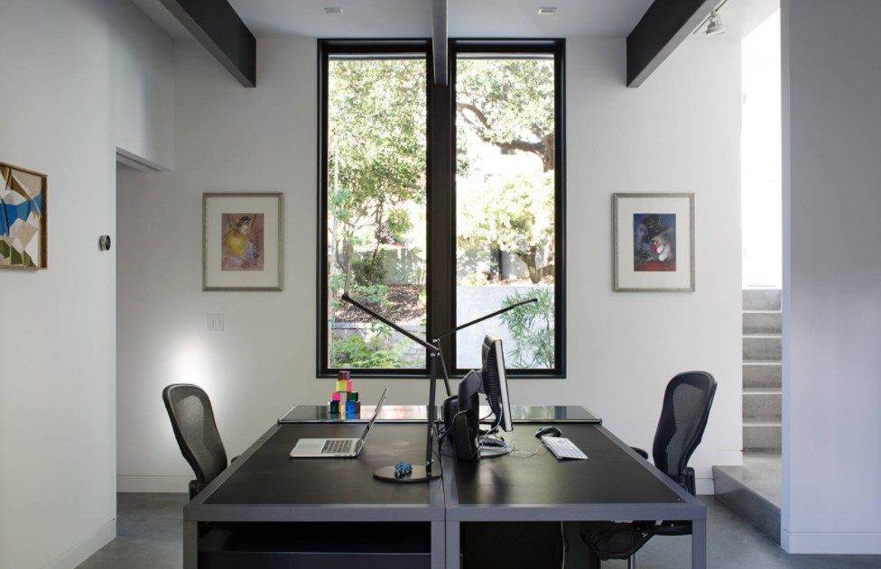 Такое стилевое направление предоставляет прекрасную возможность убрать всё лишнее с глаз долой и сосредоточиться на выполнении рабочих обязанностей. Сдержанные цвета, чёткие прямые линии и минимальное количество аксессуаров – это всё что будет окружать вас в подобном интерьере.