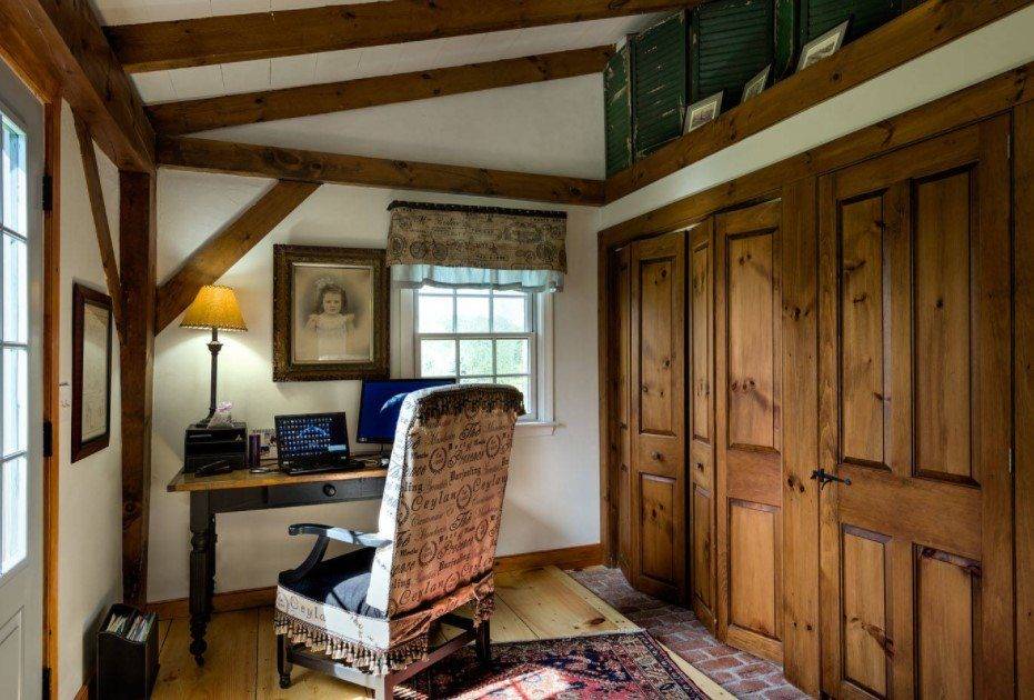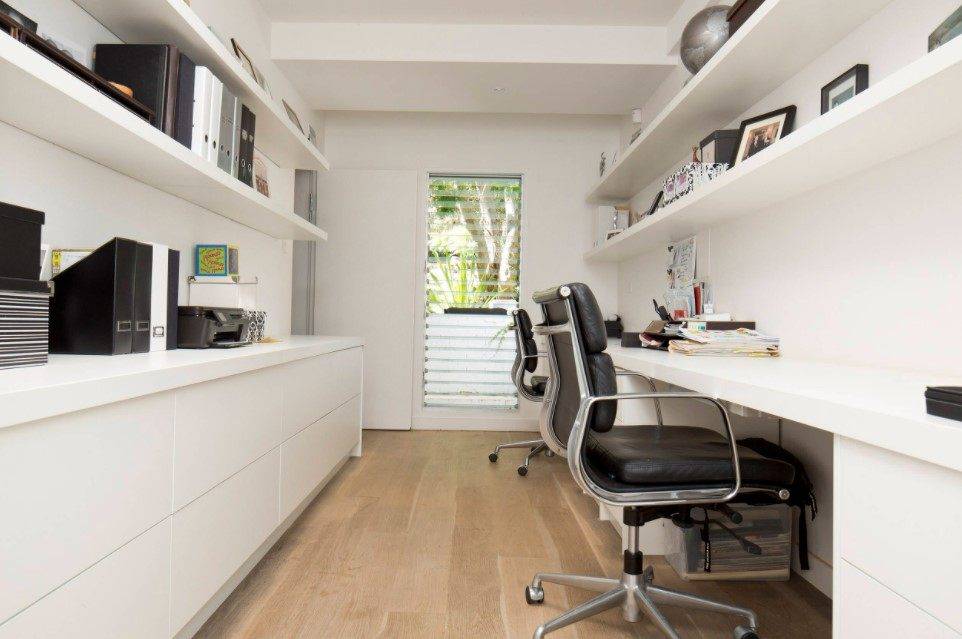 Если ваша профессия подразумевает посещение гостей, расположить рабочий кабинет необходимо в максимальной близости к входной зоне, желательно предусмотреть дверь, чтобы дети не помешали деловому разговору. Каждый из предложенных вариантов имеет свои особенности и хитрости, остановимся на них поподробнее.