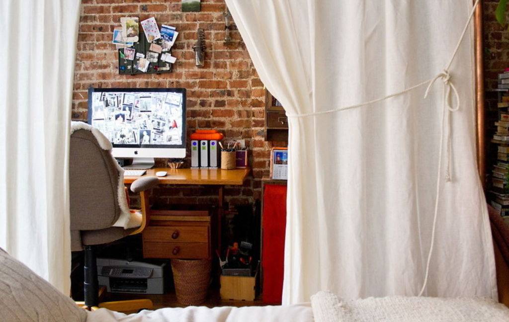 Отделить рабочее пространство можно с помощью штор