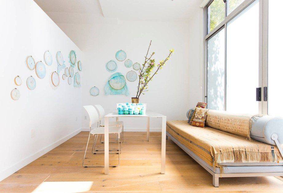 Для визуального разделения делового пространства и места отдыха используйте различные потолочные и напольные покрытия. Купите разные обои, материалы иных фактур или просто используйте другие цвета и оттенки.