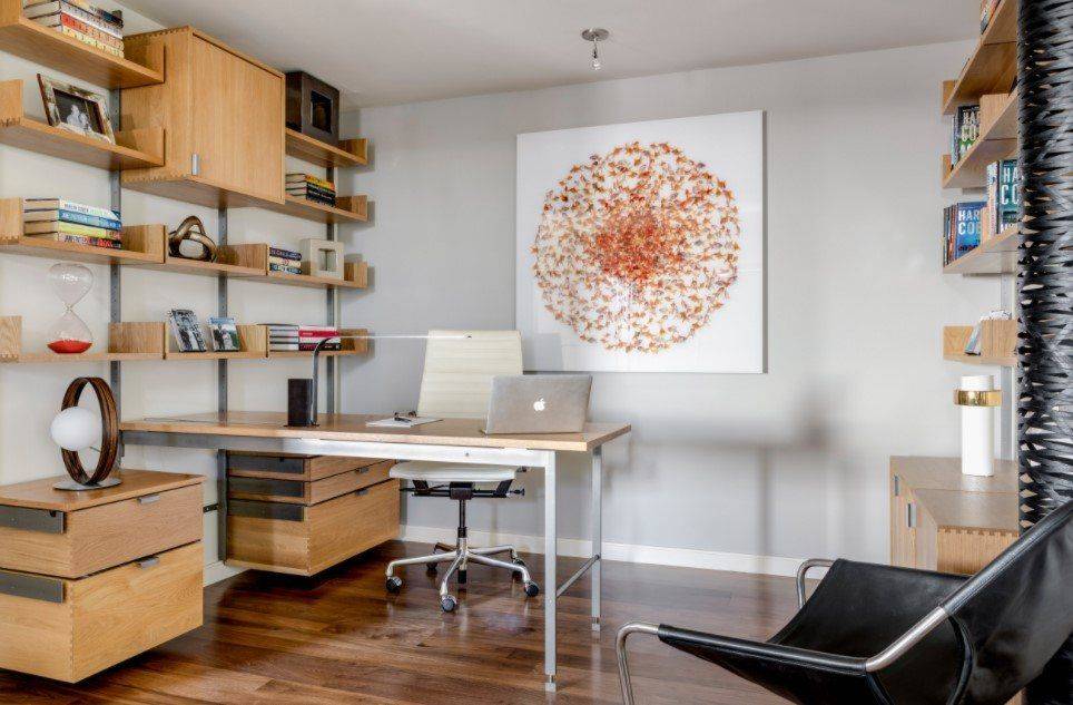 Для небольших квартир иногда так складываются обстоятельства, что в одной комнате нужно разместить несколько жизненно важных зон. К примеру, рабочего кабинета и зоны отдыха. Сделать рабочее пространство по-настоящему изолированным вряд ли получится, но вот визуально выделить это место можно. Главное, правильно распределить полезную площадь и хорошо продумать мебель. А если прибегнуть к помощи дизайнеров, можно получить красивый и комфортный для жизни интерьер.