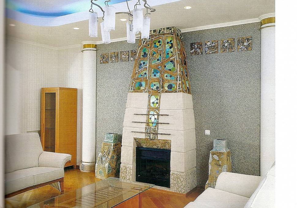 Штукатурка камина или печи позволяет добиться неплохой эстетики прибора в интерьерах разного рода, см. рис., но весьма трудоемка даже для простой белой штукатурки. Штукатурки декоративные, напр. венецианскую или полированную stucco, здесь придется вообще оставить, это отдельная сложная тематика. В любом случае главная препона при оштукатуривании печи/камина – разделка швов. Если прибор ходовой и кладочный раствор в швах спекся в камень, подготовка его поверхности под штукатурку становится не просто долгой, но изматывающей, требующей предельного внимания и опыта, чтобы в шве не пошла трещина.