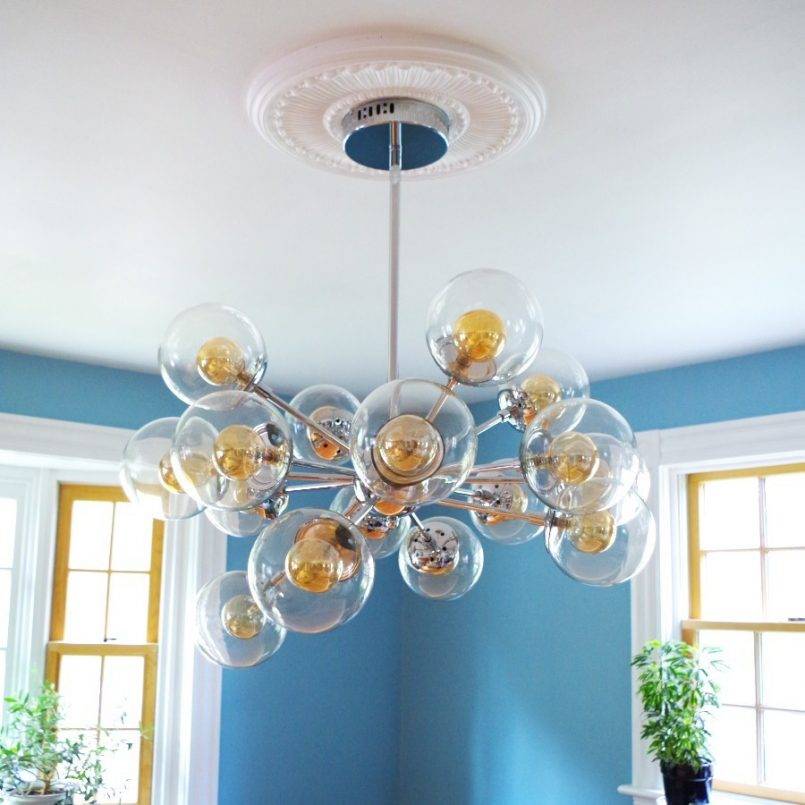 После этого можно начинать работы по подвешиванию люстры и подключению ее к сети 220 вольт.