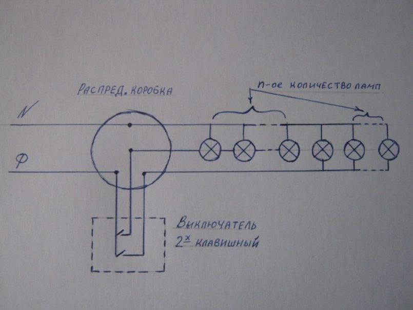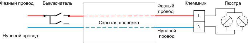 Очень важно, чтобы фаза шла именно на выключатель и дальше на светильники. Ноль должен идти на последний элемент электрической цепи