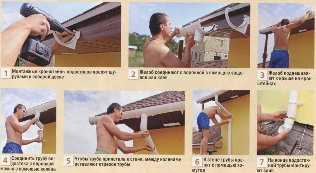 После монтажа желобов монтируют планку карниза, нижнюю часть которой спускают в жёлоб, для предупреждения намокания фронтальной доски.