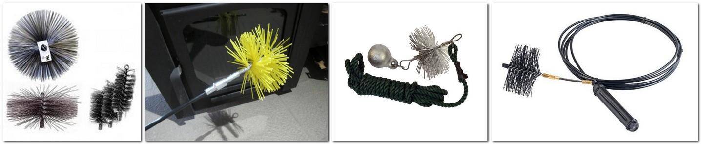 Вкратце выше уже был описан весь процесс прочистки дымовой трубы. К сказанному нужно только добавить, что при сильном засорении дымового канала первой операцией является пробивка нагара ядром без дополнительных приспособлений. Только после этого последовательно используются щётки различного размера и конструкций.