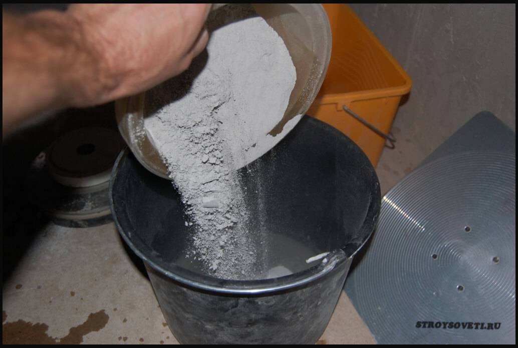 Важно: если в емкости для разведения раствора будут присутствовать остатки засохшего старого материала, на обрабатываемой поверхности будут царапины. Если материал начал застывать, а вы не успели его израсходовать, добавьте немного холодной воды и тщательно перемещайте. Это даст вам дополнительные минут 10 для использования приготовленной смеси