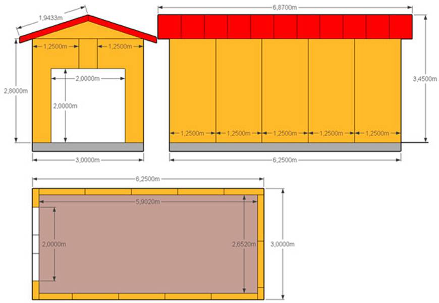 1. Классический гараж на 1 машину. Его можно поставить на дачном участке или рядом с частным домом. Используйте гараж по прямому назначению или превратите его в склад, хозяйственное помещение. Высота потолка составляет 2.8 метра. Он станет отличным решением для сельской местности, чтобы хранить в нем габаритную спецтехнику (чертеж ниже).