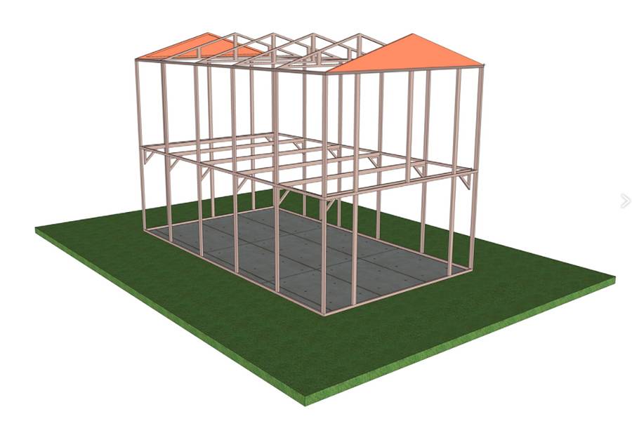 При постройке здания из двух этажей рекомендуется использовать несущий каркас. Лучше устанавливать металлическую конструкцию. Она способна выдержать большее количество нагрузки. Наличие второго этажа предполагает увеличение общего веса конструкции. Стены нужно усиливать с помощью несущей рамы из металла.