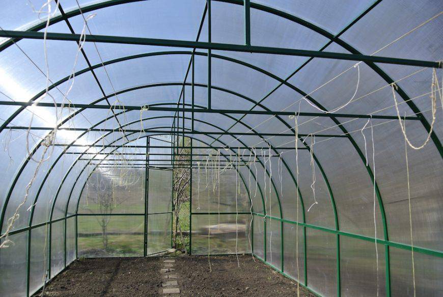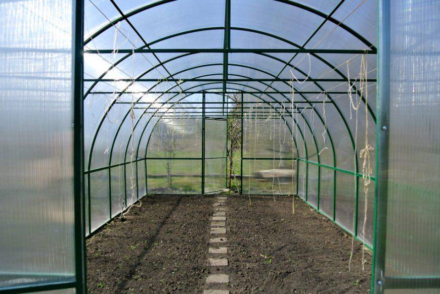 Ширина теплицы должна быть такой, чтобы в ней было удобно работать и было комфортно расти культурам, без риска повреждения из-за тесноты. Необходимо учитывать ширину дверного проёма (не менее 56 см); секций (до 97 см); пространство между секциями (не менее 60 см).