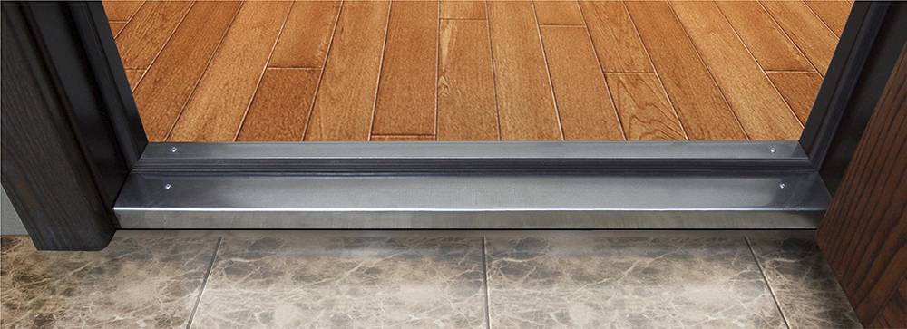 Металлические пороги обычно устанавливают из нержавейки, алюминия или латуни. Если монтируется металлическая дверь, то ее сразу оборудуют таким же порогом, что упрощает задачу.