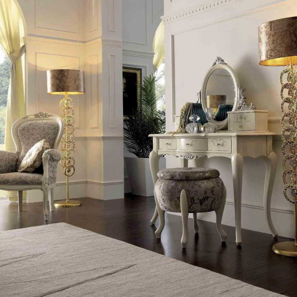 Классика более сдержана в своем разнообразии: прикроватный пуфик для спальни будет выполнен, используя однотонные пастельные тона, очень редко – клетку. Предпочтение отдается бархату и коже, а фактура деревянных элементов подбирается под окружающий дизайн.