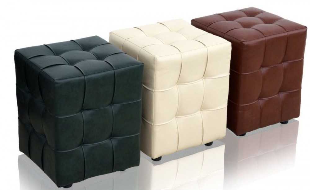 При производстве мягких пуфиков в качестве набивки используют, как правило, пенополиуретан, синтепон или холлофайбер. Сверху они могут быть обтянуты натуральной или искусственной кожей, а также различными видами тканей.