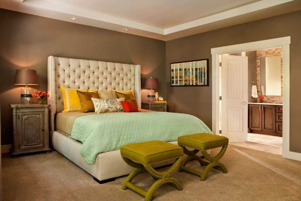 Первый типаж часто использует кованые элементы, которые сразу привлекают к себе внимание посетителей спальни. Модерн с его яркими частями мебели в раскраске металлик красиво сочетается с натуральным деревом: производители часто используют его в качестве материала для ножек