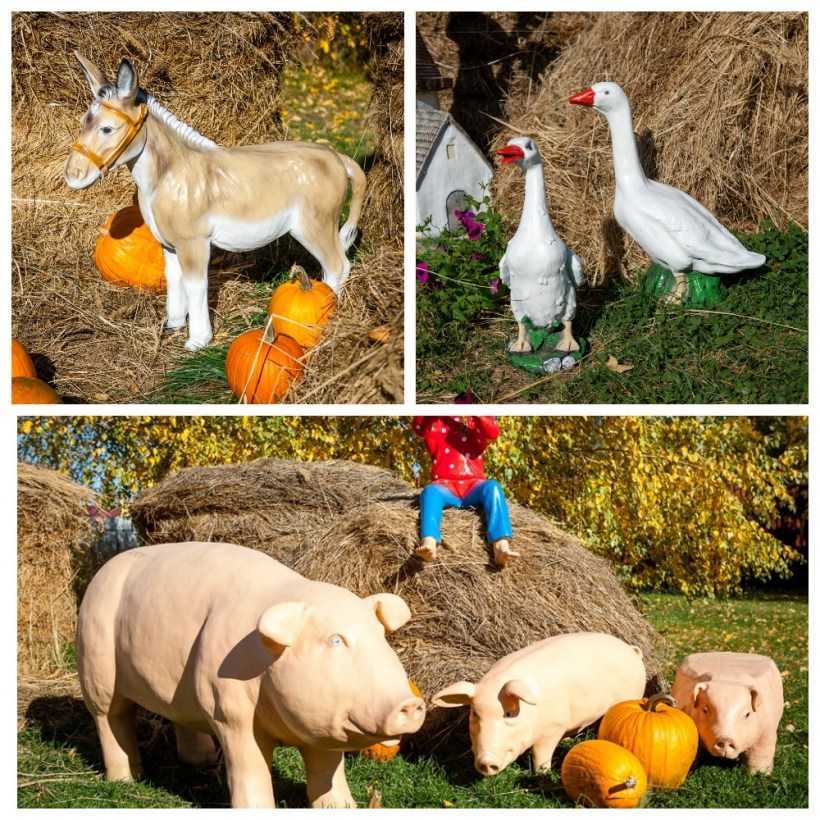 Занимательно смотрятся целые наборы изделий с общей тематикой. Они помогут создать повышенный уют при отдыхе на даче. Устанавливать их рекомендуется по всей территории. Интересно смотрятся похожие модели, расставленные неподалеку от дорожки и зоны отдыха (детской площадки, открытой беседки).